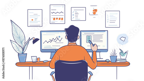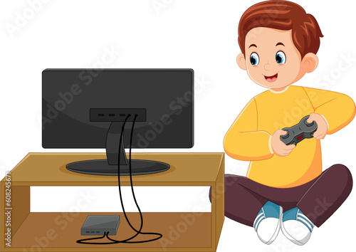 Мальчик, играющий в видеоигру, векторный значок, изолированный на белом фоне