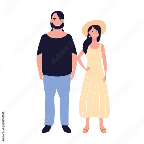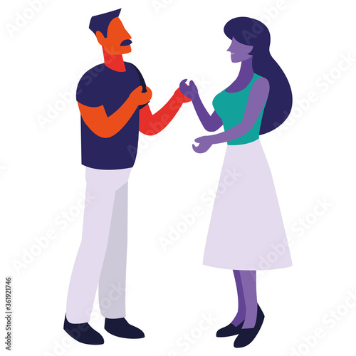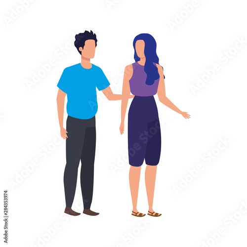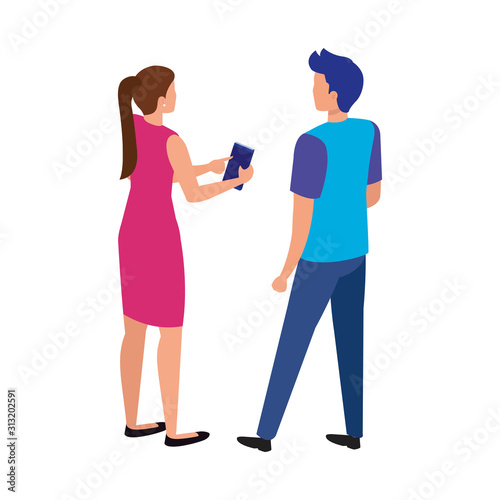 Парень, снимающий девушку с помощью мобильной камеры, векторный значок, изолированный на белом фоне