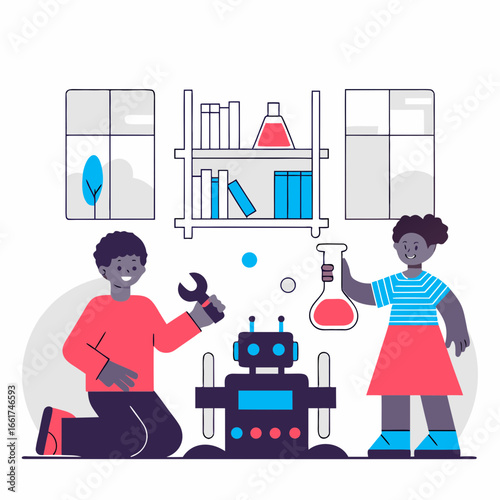 Иллюстрация дизайна плоского стиля векторной концепции увеличения груди. Хирург, работающий над размером, формой и красотой женской груди. Процедура пластической хирургии по реконструкции груди.