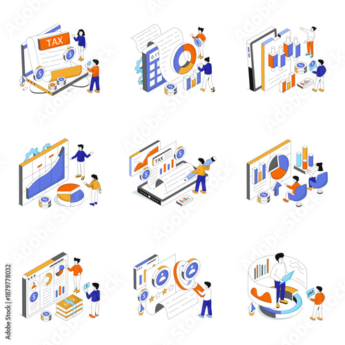 Вещательная и печатная журналистика, набор изометрических значков, плоская векторная изолированная иллюстрация. Радио- и телевизионное вещание. Средства массовой информации. Типография, полиграфия, типография.