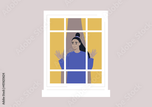Векторная иллюстрация женщины, держащей сломанную трубу в одной руке и перегоревшую лампочку в другой руке. Концепция ремонта сломанной трубы элемент дизайна в плоском стиле.