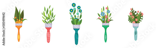 Нарисуйте кистью эко-дизайн для лета или весны. Векторная иллюстрация зеленой травы, цветка и бабочки в стиле вырезанного из бумаги искусства и ремесла. Творческое произведение искусства