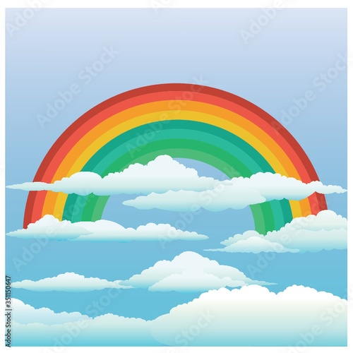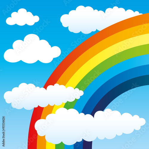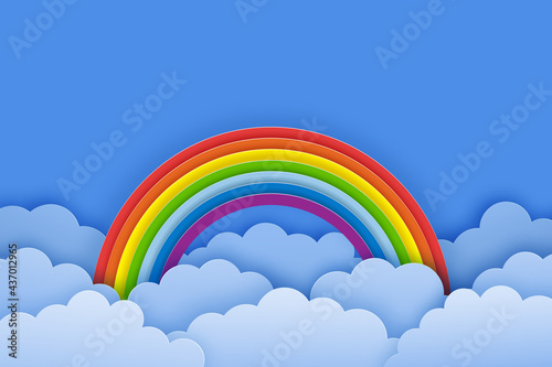 Векторная кисть рисует красочную радугу. Разноцветная полоска акриловой масляной краски на небе с облаком. Дизайн художественной композиции, вырезанной из бумаги. Иллюстрация творческих и декоративных работ. Концепция художественной гравюры