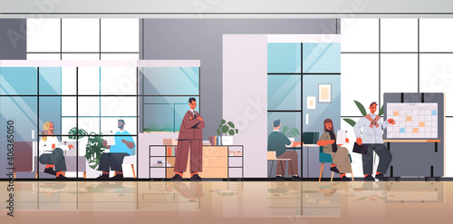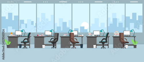 Векторная иллюстрация интерьера кухни ресторана и банкетного зала с поваром, готовящим блюдо на огне, гости ресторана наслаждаются прекрасным ужином в стиле шведского стола. Дизайн в плоском стиле.