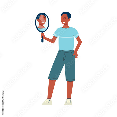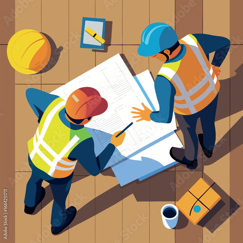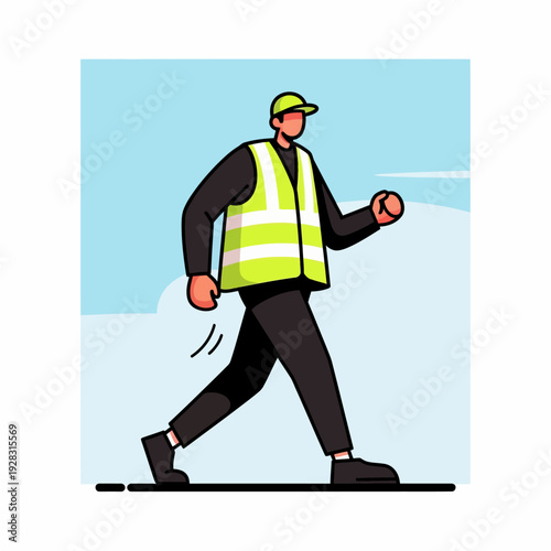 Строитель, работающий с векторной иконкой молотка, выделенной на белом фоне. Рабочий персонаж, ремонтник или плотник