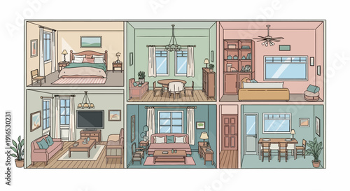 Фасад здания с людьми на балконах. Мужчины и женщины разговаривают с соседями, занимаются спортом, поливают цветы. Концепция соседей в карантине. Векторная иллюстрация.