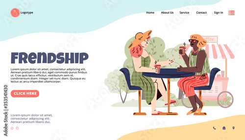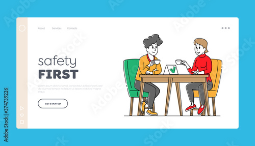 Векторный шаблон веб-сайта Burger house, дизайн веб-страницы и целевой страницы для разработки веб-сайтов и мобильных сайтов. Официантка подает бургер, картофель фри и содовую счастливой паре, сидящей за столиком.