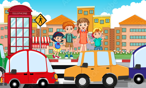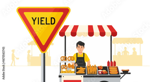 Терминал автовокзала, плоская векторная иллюстрация. Пассажиры с книгой, фотоаппаратом, чемоданом ждут автобуса.
