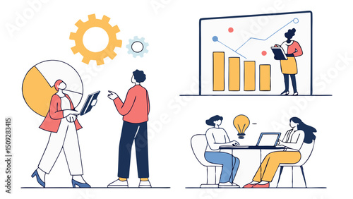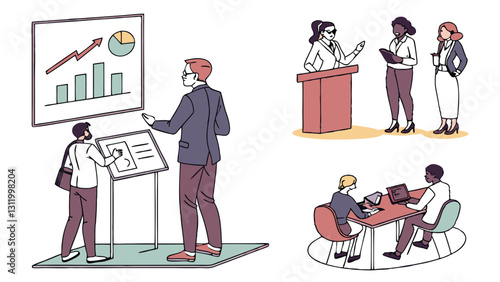 Набор символов банкротства бизнеса, векторная плоская изолированная иллюстрация. Люди паникуют из-за закрытого офиса, финансовых проблем, неоплаченных долгов, потери работы. Финансовый кризис, крах бизнеса.