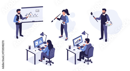 Набор символов банкротства бизнеса, векторная плоская изолированная иллюстрация. Отчаявшиеся грустные бизнесмены, испытывающие финансовые проблемы, неоплаченные долги, скованные строительством предприятия. Деловой арест.