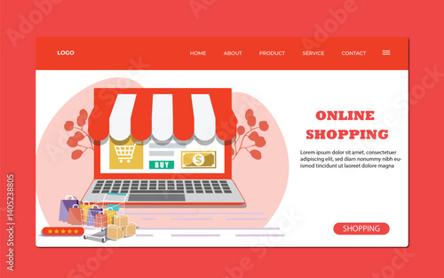 Векторный шаблон веб-сайта банкротства бизнеса, дизайн целевой страницы для разработки веб-сайта и мобильного сайта. Тонущий розничный магазин подобен тонущей лодке. Крах бизнеса, экономический коллапс.