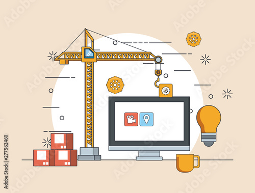 Векторная иллюстрация диаграммы деловой активности строительного крана на приборной панели. Построение бизнеса, концепции анализа данных для веб-баннера, страницы веб-сайта, презентации и т.д.