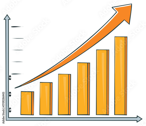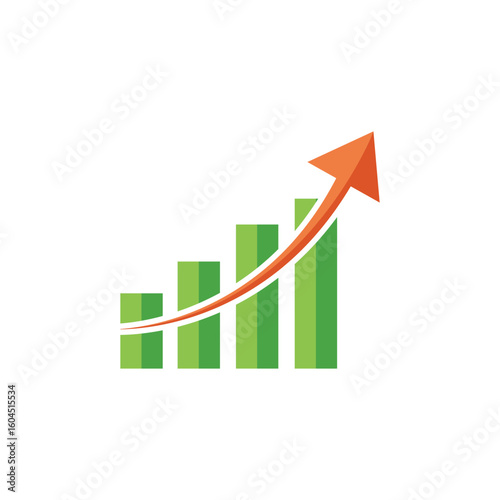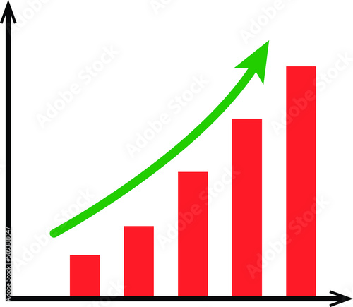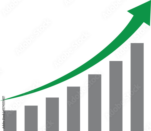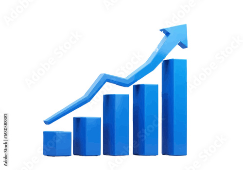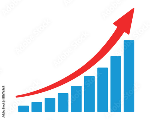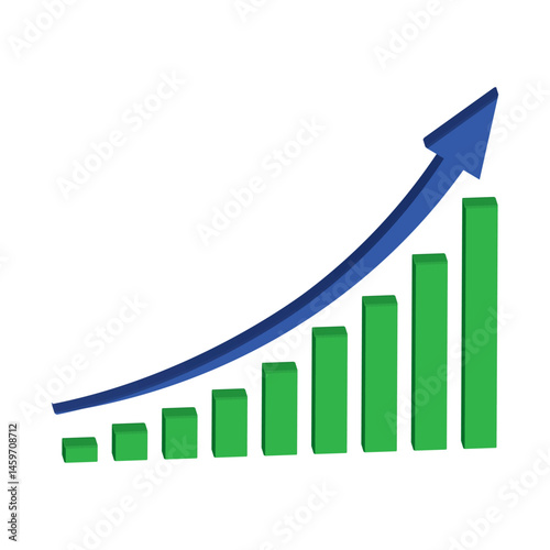 График векторного роста. Линейка бизнес-диаграмм и значок со стрелкой вверх. Диаграмма успеха и график прибыли, финансового прогресса. Изометрическая инфографика, выделенная на белом фоне