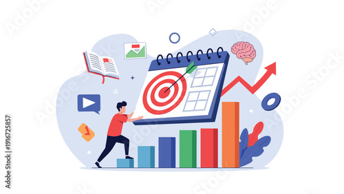 Концепция развития бизнеса и стратегии. Тяжелая работа для роста бизнеса. Бизнесмен с новой идеей. Векторный шаблон дизайна веб-сайта. Иллюстрация концепции сайта целевой страницы.