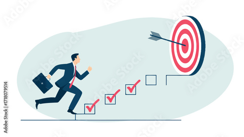 Векторная иллюстрация лучника, стреляющего из лука. Бизнесмен целится из лука в центр мишени. Элемент дизайна концепции бизнес-цели.