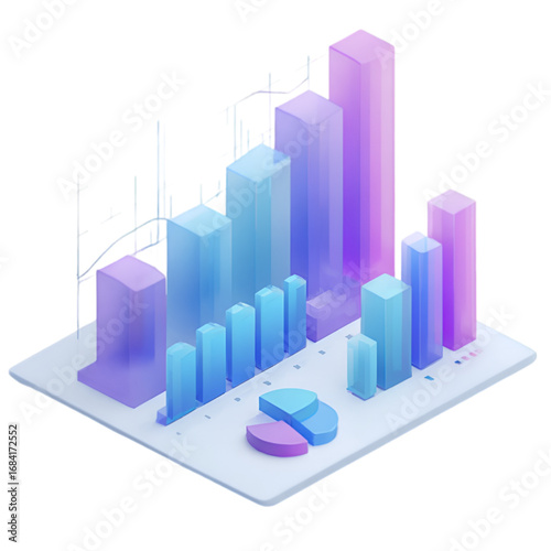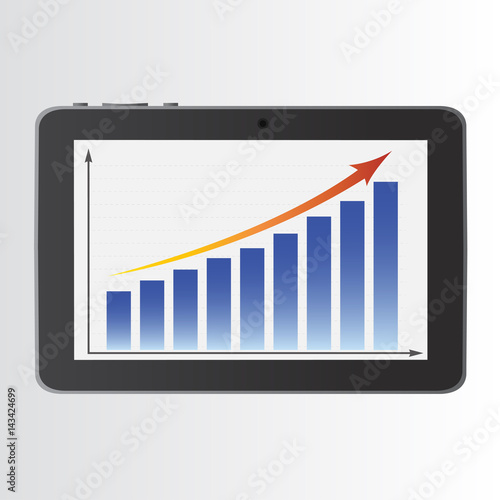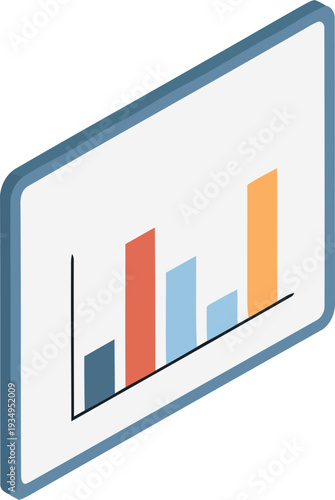 Графическая диаграмма бизнес-данных на векторном экране мобильного устройства. Диаграмма финансового или рыночного анализа на смартфоне. Приложение для исследований и сбора статистики. Изометрический 3d-телефон, выделенный на белом фоне
