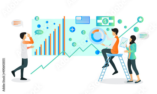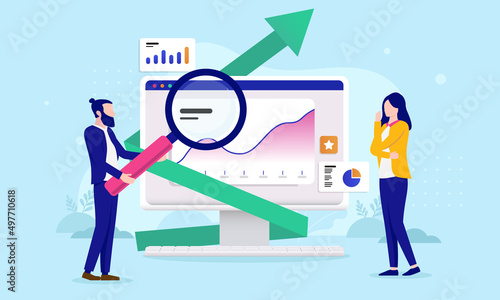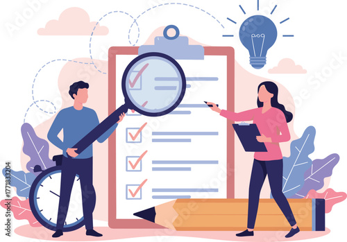 Деловые люди, читающие правила компании, плоская векторная иллюстрация. Бизнес-законы и нормативные акты, этическая практика, политика и процедуры соблюдения требований.