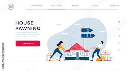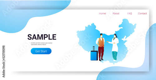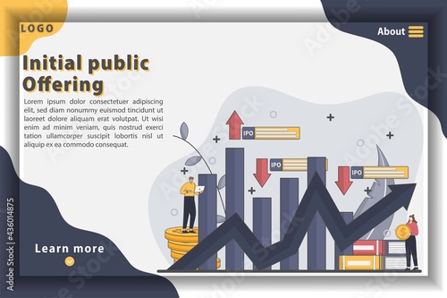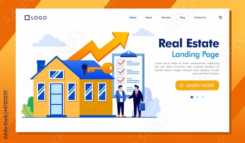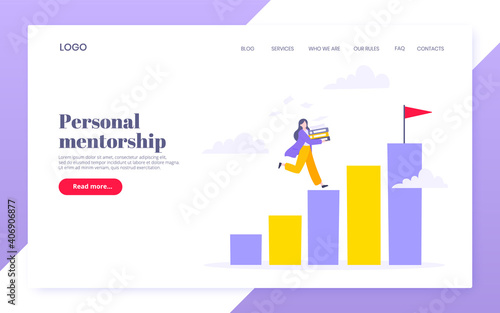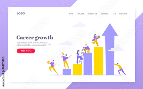 Шаблон веб-сайта целевой страницы бизнес-лидера. Векторная иллюстрация бизнесмена, смотрящего в телескоп, стоя на стрелке вверх. Концепция лидерства и видения.