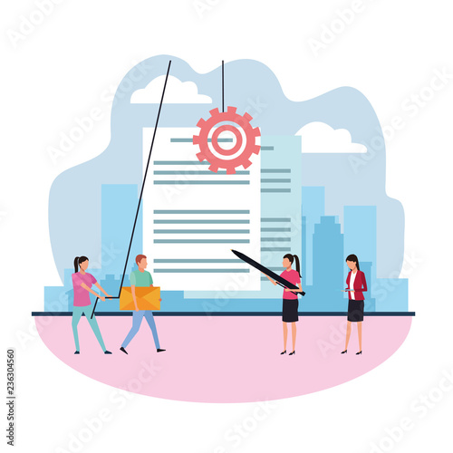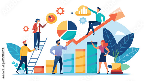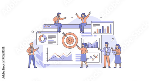 Группа деловых людей на лекции, конференции, встрече векторная иллюстрация. Бизнес-тренинг, презентация, концепция семинара для веб-баннера, страницы веб-сайта и т.д.