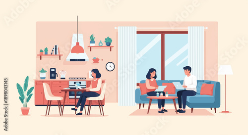 Векторная иллюстрация концепции деловой встречи. Бизнесмен делает презентацию новой бизнес-стратегии. Гибкая командная работа в офисе с аналитической доской данных.