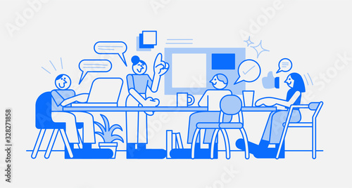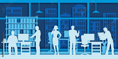 Силуэты деловых людей в различных офисных ситуациях, векторная иллюстрация в современном стиле бумажного искусства. Бизнес-концепция для плаката, баннера, страницы веб-сайта и т.д.