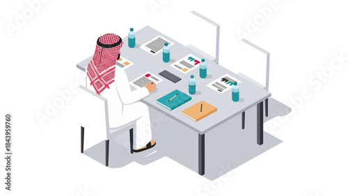 Деловые люди вместе строят блок со стрелкой вверх, плоская векторная изометрическая иллюстрация. Международная бизнес-командная работа, сотрудничество, командная работа.
