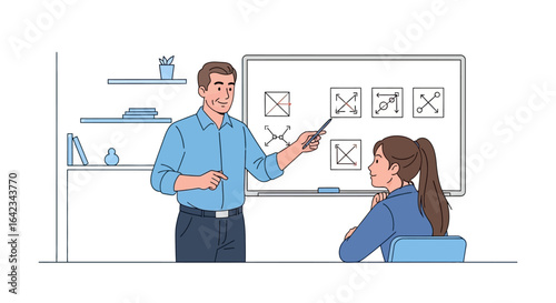 Деловые люди, буфер обмена с контрольным списком, часы. Женщина проверяет список дел, мужчина показывает знак рукой "ок", плоская векторная иллюстрация. Управление задачами, планирование, тайм-менеджмент.