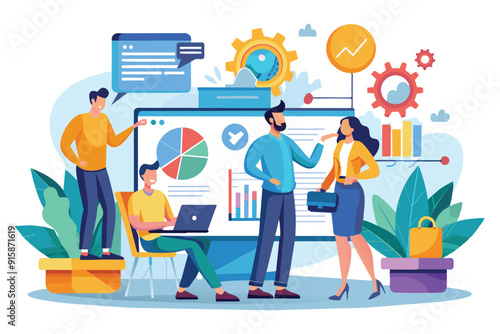 Отзывы клиентов, рейтинг, обратная связь с клиентами. Деловые люди, собирающие звезды, использующие улыбающиеся лица в вопросах опроса в качестве ответов, плоская векторная иллюстрация. Эмодзи, опрос удовлетворенности клиентов смайликами.