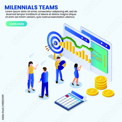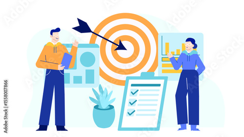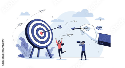 Деловые люди соединяют части мишени вместе, плоская векторная изометрическая иллюстрация. Командная работа, сотрудничество, партнерство.