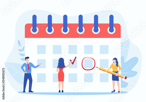 Сотрудники деловых людей планируют расписание в календаре, плоская векторная иллюстрация. Тайм-менеджмент. Планирование кампании.