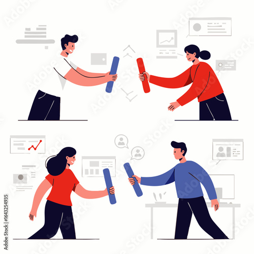 Деловой мужчина и деловая женщина пожимают друг другу руки, векторная иллюстрация дизайна в плоском стиле. Деловое соглашение или концепция встречи для веб-баннера, страницы веб-сайта и т.д.