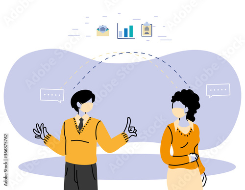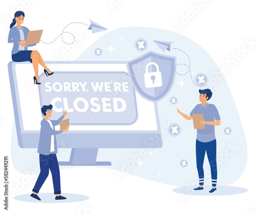 Деловые люди в очках виртуальной реальности прикасаются к интерфейсу виртуальной реальности, плоская векторная иллюстрация. Виртуальное образование, симуляция. Технология виртуальной реальности.