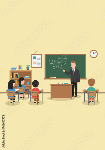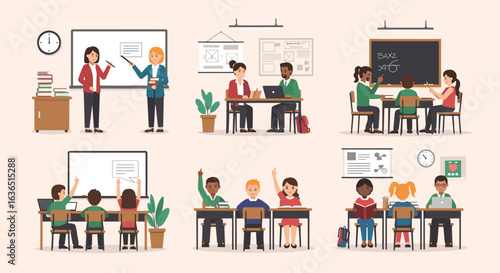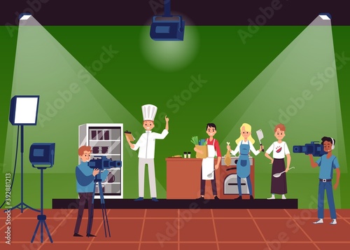 Векторная иллюстрация деловых людей, выступающих с презентацией, получающих сертификат после завершения семинара или семинара. Офисный интерьер. Дизайн в плоском стиле.