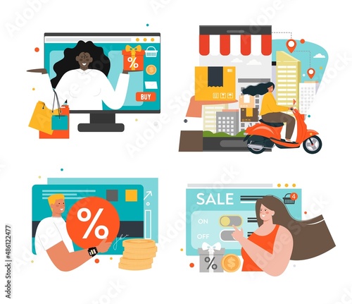 Деловые люди с наличными деньгами, кредитной картой, денежным мешком, плоской векторной изолированной иллюстрацией. Финансовый успех, карьерный рост.