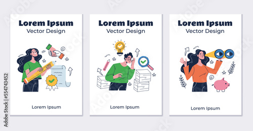 Бизнес-планирование, финансы, услуги и маркетинг. Стратегия успеха в бизнесе. Экраны загрузки мобильных приложений. Векторный шаблон баннера для веб-сайта и мобильной разработки. Иллюстрация дизайна веб-сайта.