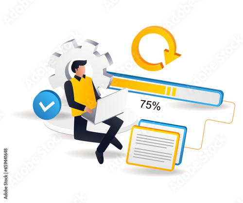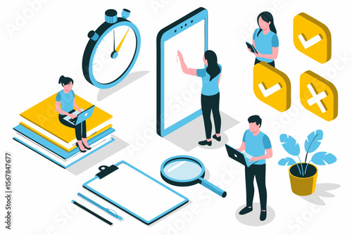 Кампания по продвижению бизнеса, плоская векторная изометрическая иллюстрация. Цифровой мобильный маркетинг, социальные сети, контент-маркетинг, привлечение клиентов, seo.