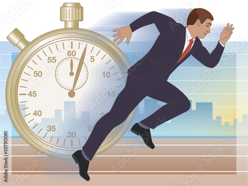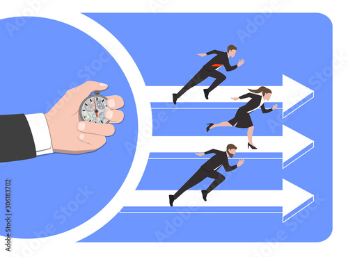 Векторная иллюстрация эстафеты бизнесменов и человеческой руки с секундомером. Командная работа, элемент дизайна концепции партнерства.