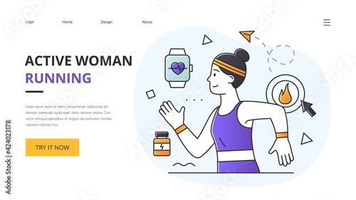 Шаблон целевой страницы ракеты. Векторная иллюстрация футуристического пользовательского интерфейса hud, бизнесмен поднимается по ракетной лестнице. Бизнес-стартап, концепция будущей технологии для веб-сайта, разработка мобильного сайта