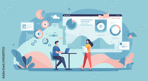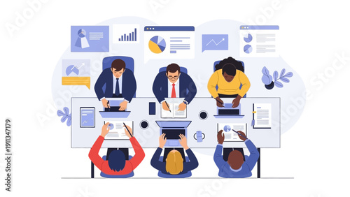 Набор бизнес-стратегий, плоская векторная изолированная иллюстрация. Бизнес-цель и развитие, достижения, успех, анализ данных.