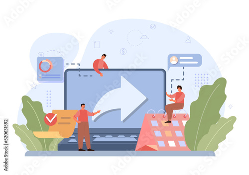Набор бизнес-стратегий, плоская векторная изолированная иллюстрация. Анализ данных, цифровой маркетинг, управление задачами, планирование, бизнес-видение.