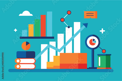 Векторная иллюстрация дизайна в плоском стиле бизнес-стратегии. Компьютер с растущим графиком, портфелем, лупой, дротиками, сиреной, ручными пазлами. Бизнес-концепция для веб-баннера, страницы веб-сайта и т.д.
