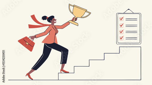Бизнесмен, держащий наградной кубок в поднятой руке, векторная плоская иллюстрация, изолированная на белом фоне. Концепция успеха в бизнесе для веб-баннера, страницы веб-сайта и т.д.