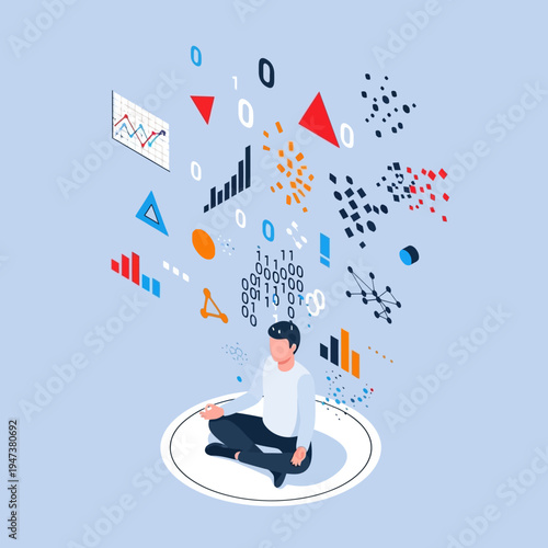 Шаблон веб-сайта целевой страницы успеха в бизнесе. Векторная изометрическая иллюстрация бизнесмена-победителя, держащего наградной кубок в руках над головой, сидя за столом на подиуме с красной ковровой дорожкой.