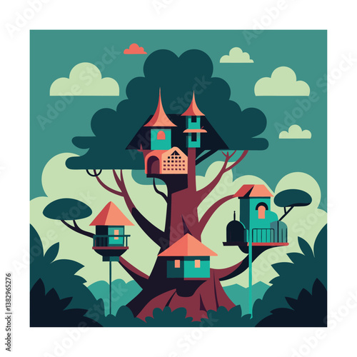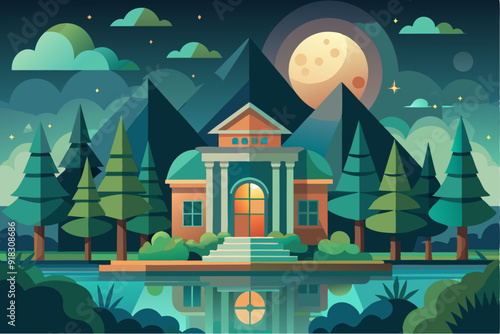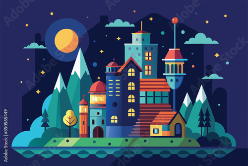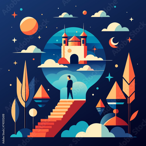 Бизнесмен взбирается по стремянке, чтобы достичь кубка трофеев на горной вершине, векторная иллюстрация дизайна в плоском стиле. Успех бизнес-команды, лидерство, достижение целей, деловая карьера.