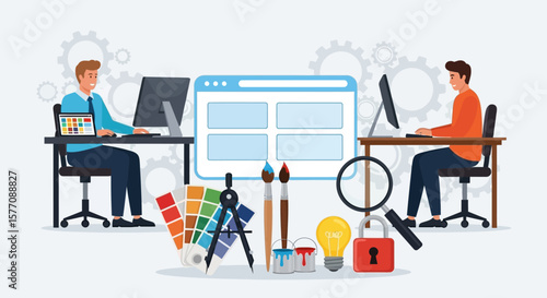 Деловые люди мужчина и женщина разговаривают друг с другом, размышляя, векторная плоская изолированная иллюстрация. Офисная сцена бизнес-команды, дебаты, мозговой штурм, концепция командной работы для веб-баннера, страницы веб-сайта и т.д.