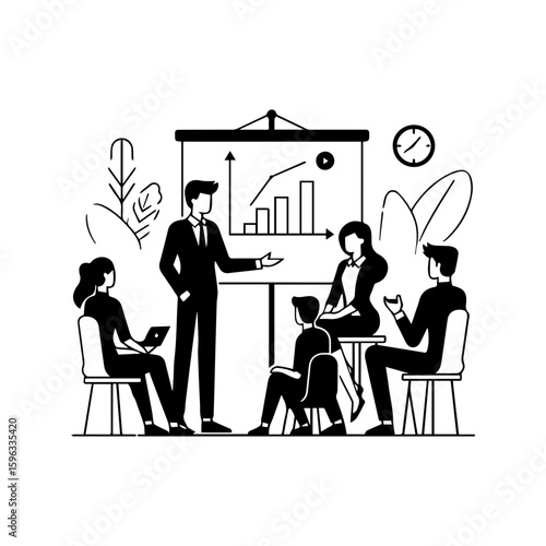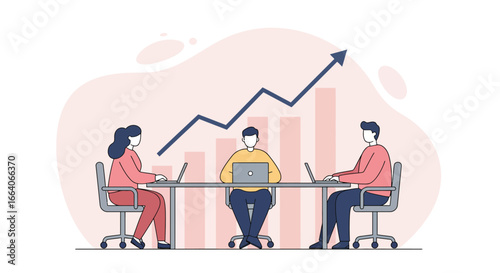 Векторная иллюстрация большой увеличивающейся гистограммы и растущей стрелки, которую крошечные деловые люди пытаются поднять вместе. Бизнес-команда, коворкинг, концепция планирования веб-баннера, страницы веб-сайта и т.д.