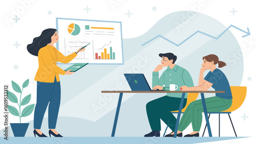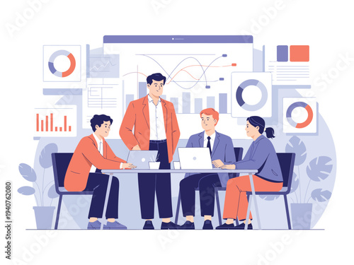 Бизнес-команда, работающая над проектом городского планирования, векторная концептуальная иллюстрация. Онлайн-бизнес-конференция, совещание, видеоконференцсвязь, презентация, командная работа.