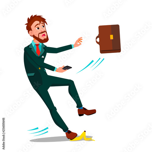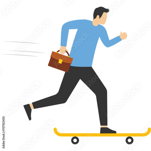 Вектор бизнесмена, занимающегося серфингом на волнах. Значок бизнес-серфинга. Плоский человек в костюме, галстуке и с портфелем, занимающийся серфингом и балансирующий на доске, выделенный на белом фоне. Лидерство и уверенное направление движения вперед