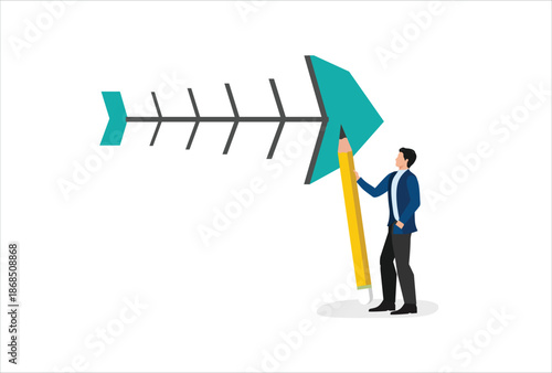 Бизнесмен, выбирающий путь, стоящий на перекрестке, плоская векторная изометрическая иллюстрация. Принятие решений, решение проблем, бизнес-стратегия, карьерный рост.