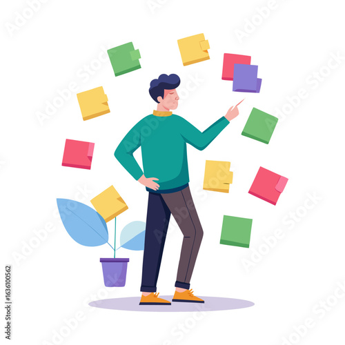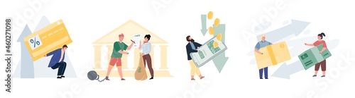 Бизнесмен, испытывающий финансовые проблемы, плоская векторная иллюстрация. Крах бизнеса, финансовый кризис, банкротство, экономический крах, коллапс экономики.